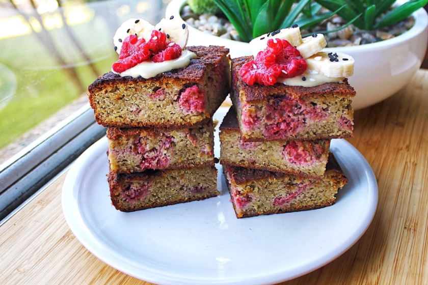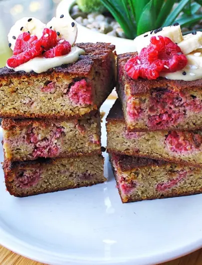 These Banana Raspberry Blondies are loaded with all things wholesome and good. With all the texture of blondies, and all the flavour of banana bread - these are a must try. They only take 10 minutes to make also happen to be gluten free, paleo and vegan. Serve as they are or dollop them with tahini and fresh berries. We love them topped with tahini mixed with Fem21 powder to support liver health, gut health, adrenal function and alkalisation which help balance women’s hormones. Talk about dessert with benefits!