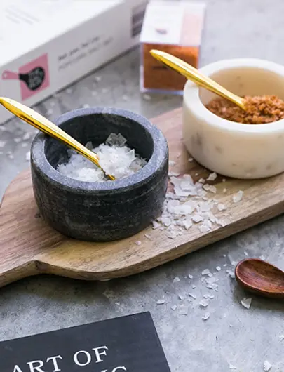 If you want an easy way to enhance flavour, seasoned and smoked salts are amazing, too. Seasoned salt is a mix of salt and herbs, such as celery, garlic or onion. Smoked salts are smoked with wood, like mesquite or hickory, for a couple of weeks to give them a delish smoky flavour.