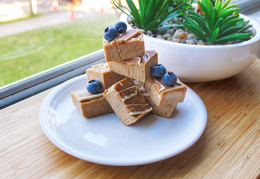 This 7 Ingredient Healthy Fudge recipe is a rich and decadent treat that everybody will love! It’s easy to make, naturally sweetened with dates, made with minimal ingredients, has the perfect texture and is packed with healthy fats like tahini and coconut oil to nourish your skin. We've topped it with Krumbled Beauty Bite Bars for the ultimate skin loving sweet treat!
