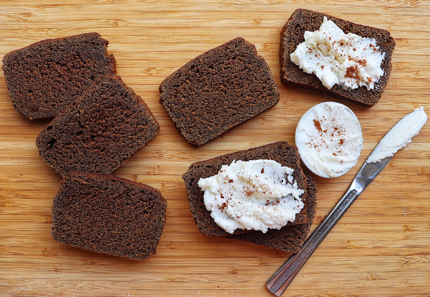 - Spread mixture on each slice or over the top of the loaf. Sprinkle cinnamon on top for decoration.