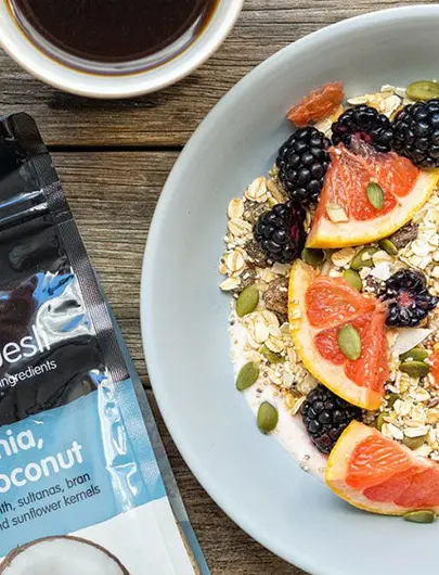 Drop your spoon of sugary breakfast cereal and replace it with Sunsol Muesli. Breakfast cereals are an easy and popular choice, but they are often filled with processed ingredients, added sugar and refined carbohydrates. Some are so laden with the sweet stuff that they not only send your blood sugar soaring, but can also cause some costly visits to the dentist. Sunsol 10+ Blueberry Muesli is a fantastic healthy alternative that doesn’t compromise on taste. It’s filled with nutrient-rich ingredients and superfoods, and contains absolutely no artificial flavours or additives. I love the addition of goji berries and blueberries, which are a delicious source of antioxidants.