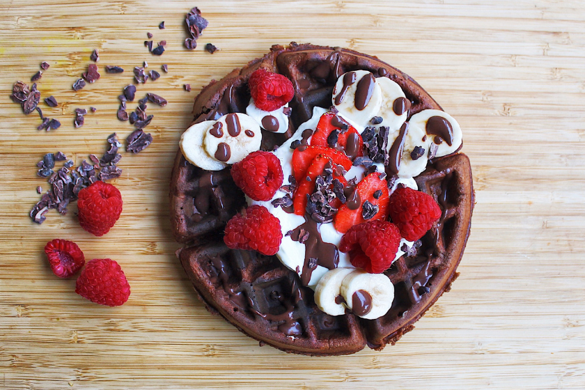 - Heat waffle iron according to instructions and grease well with coconut oil