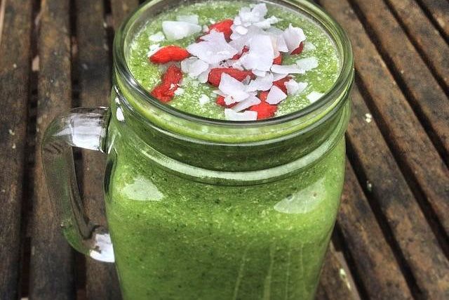- Place everything in the blender (except the coconut flakes and goji berries).