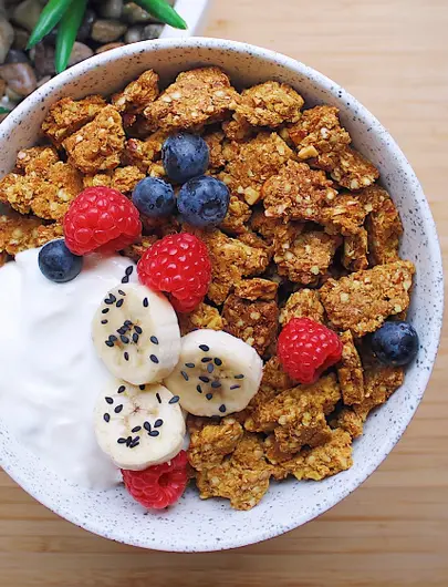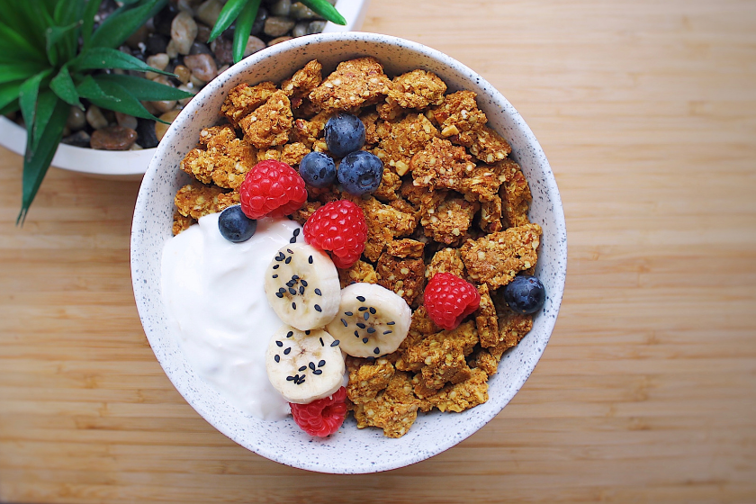 - Press onto lined baking tray – spread into flat layer and bake for 20-25 minutes or until golden brown