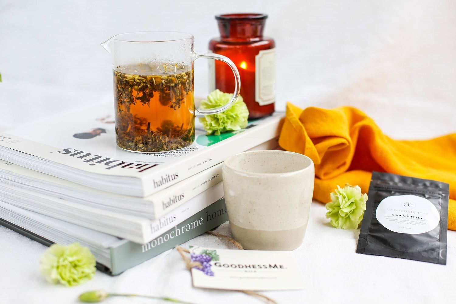 A calming herbal tea is a key part of my bedtime ritual. Herbs such as chamomile, passionflower and lavender have natural calming and gentle sedative effects on the body. Simply brew up a cup of your favourite tea and enjoy in bed. Try The Goodnight Co Good Night Tea, which combines both chamomile and passionflower to create a super relaxing tea blend!