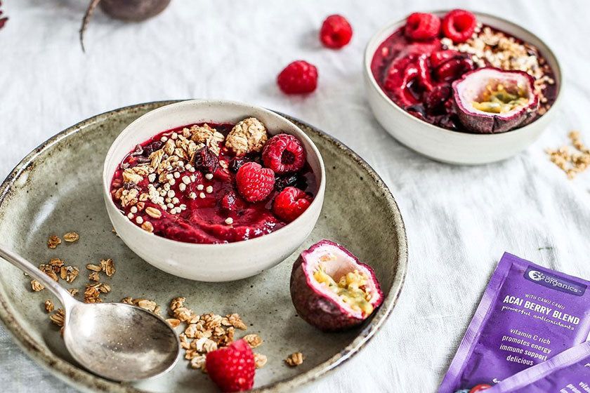 For an antioxidant and vitamin hit, use a quality acai powder like Nutra Organics Acai Berry Blend.