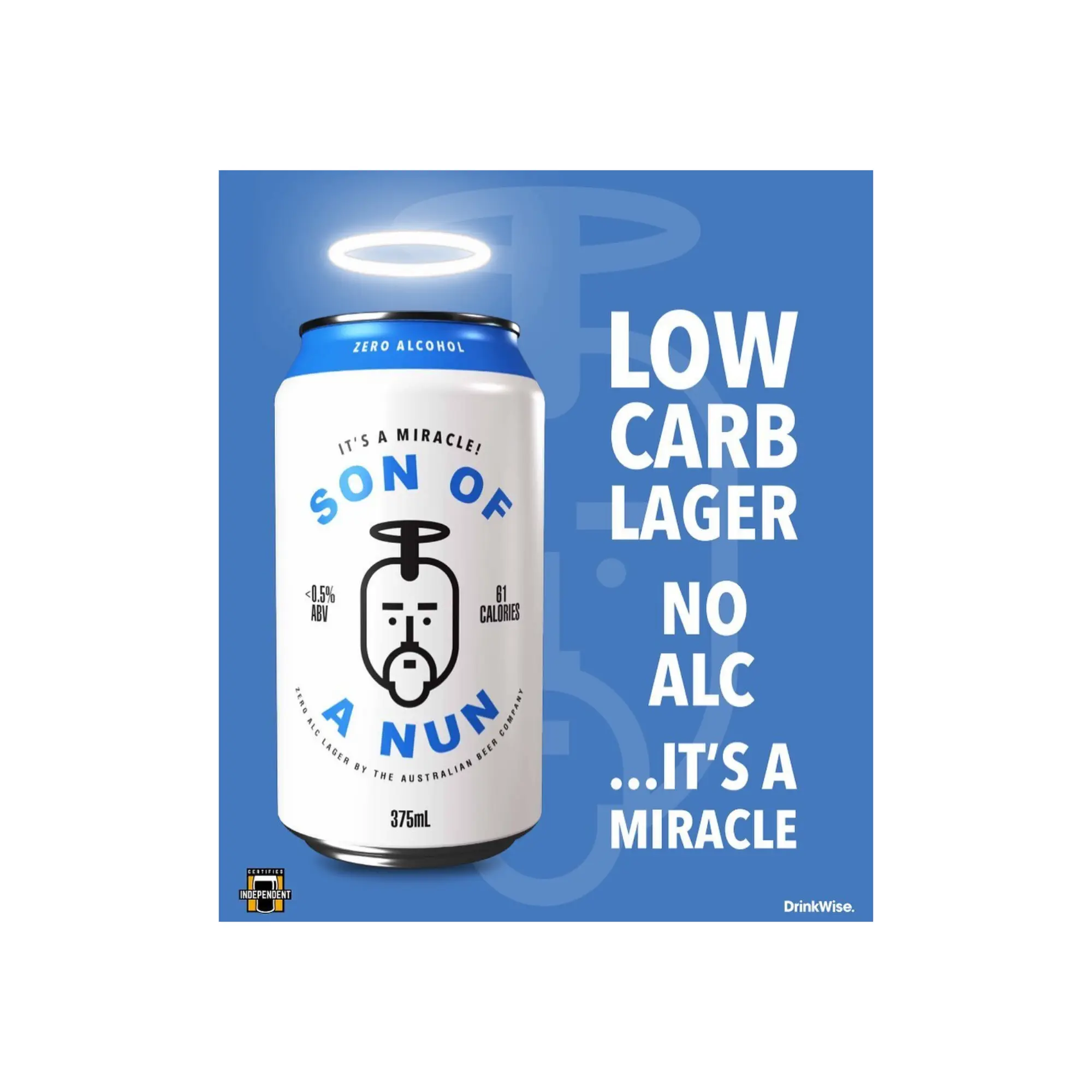 Son of a Nun's low-carb lager has a light and refreshing taste without leaving you full or bloated. The perfect way to end a long day when you want to unwind, especially during the week when a non-alcoholic beverage is ideal!