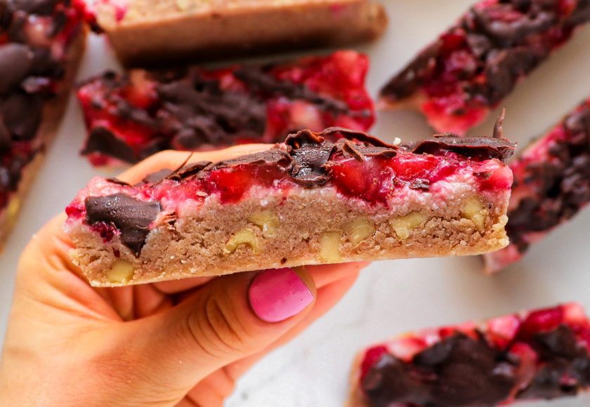 2. In a medium bowl, combine the almond flour, protein powder, nut butter, vanilla, maple syrup, water and walnuts until a “dough” is formed.