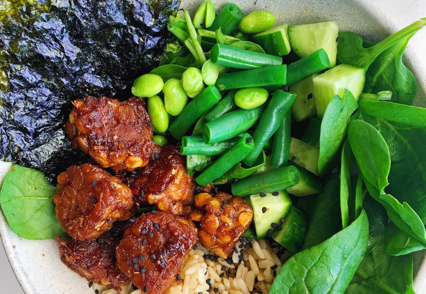 5. Add the tempeh and sprinkle with sesame seeds.