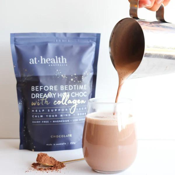 We know a good night of sleep starts with a calm mind and relaxed body, and At Health’s Dreamy Bedtime Hot Chocolate has been specifically formulated with a blend of ingredients to promote healthy sleep. With stress-fighting magnesium and ashwagandha, calming passionflower extract and sleep-inducing tryptophan, this dreamy hot chocolate allows you to drift off into a rejuvenating slumber in just a few sips.