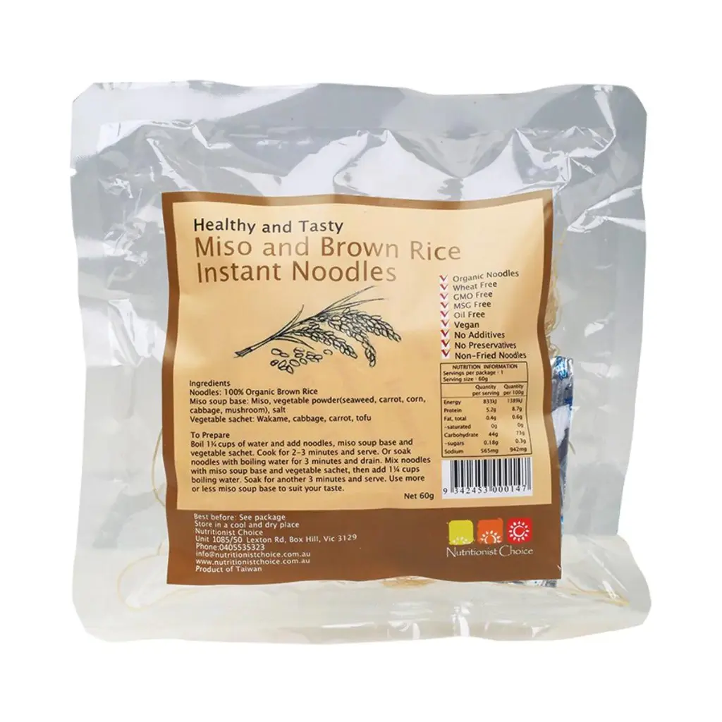 Not your average instant noodles (loaded with refined carbohydrates and MSG), Nutritionist Choice provides a wholesome take on fast food by utilising organic wholegrain vermicelli noodles and teaming them with an all-natural miso soup base. Turn this into a meal by topping with tofu or an egg.