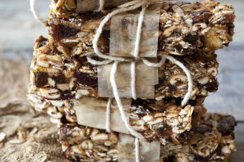 - Add chia seeds, pulse briefly. Spoon mixture into prepared baking tin and spread mixture evenly.