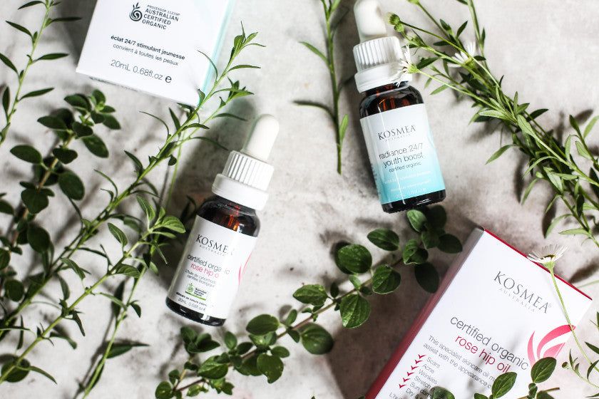 Oils can be a great source of antioxidants which helps offset this free radicle damage and prevent wrinkles. Kosmea’s Certified Organic Rosehip Oil or 24/7 Youth Boost products for example contains a healthy dose of essential fatty acids, vitamins and antioxidants to protect the skin against sun and toxic damage, stimulate the repair process and keep the skin moisturised and plump.